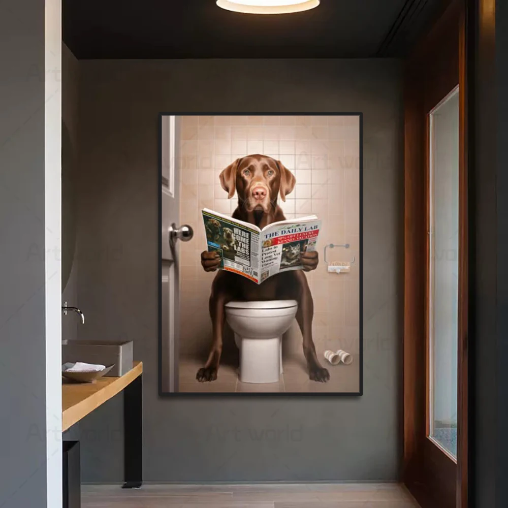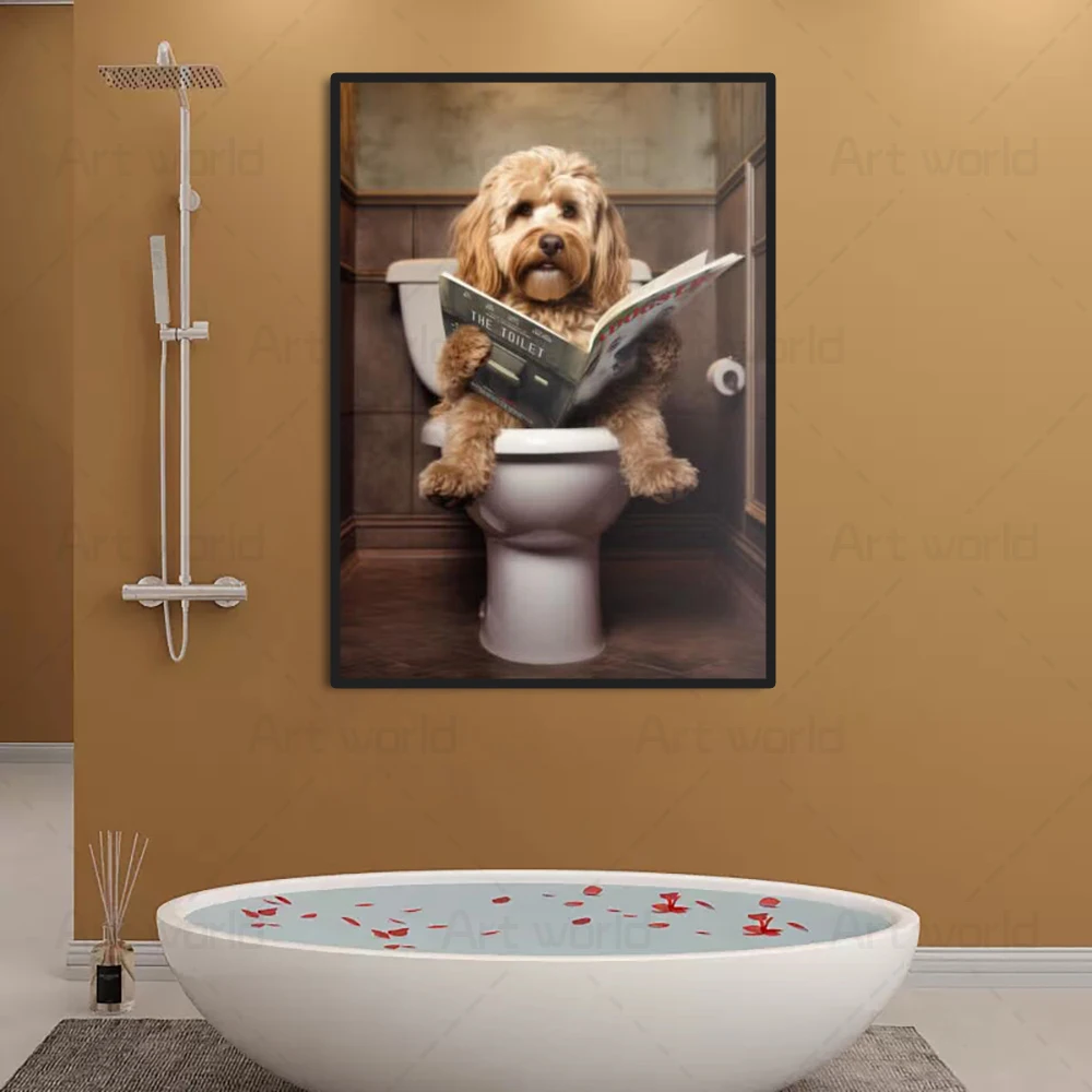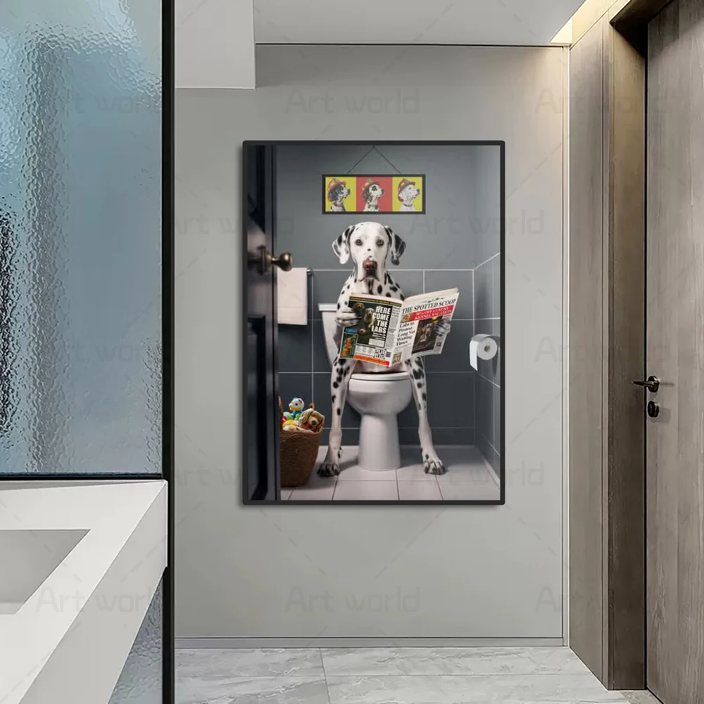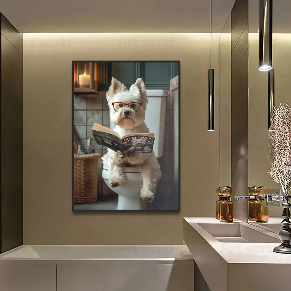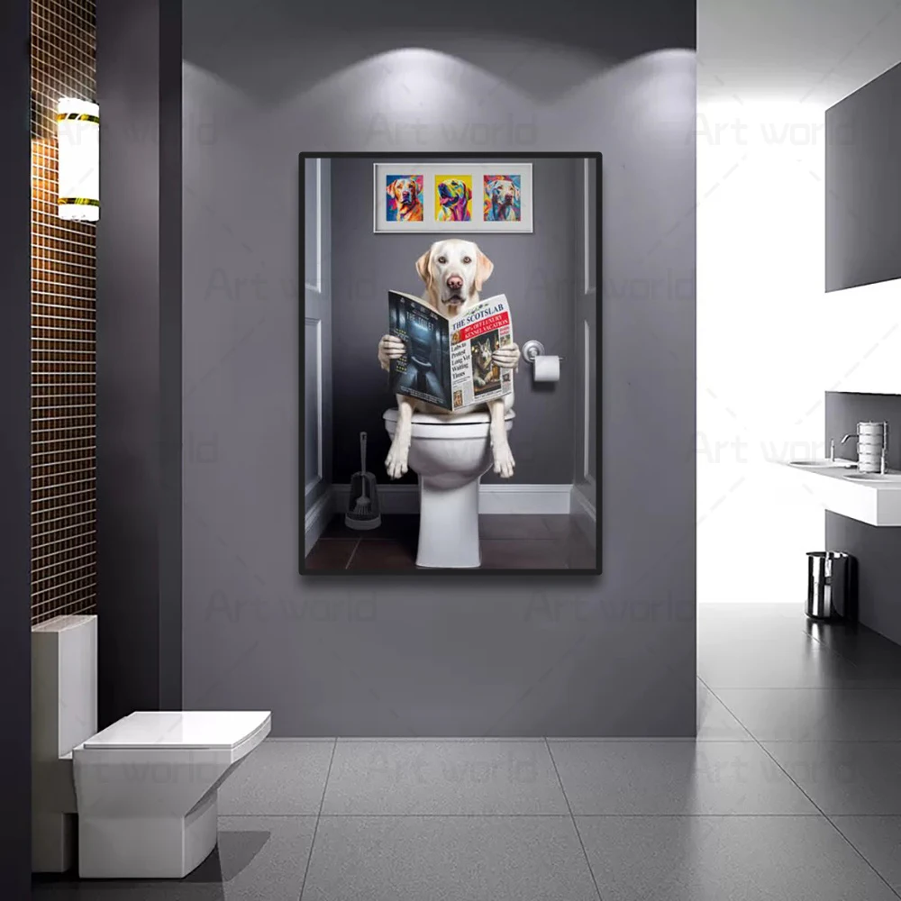 Cute Animal Dog Raccoon Toilet Reading Funny Poster Wall Art Canvas Painting for Living Room Home Decoration