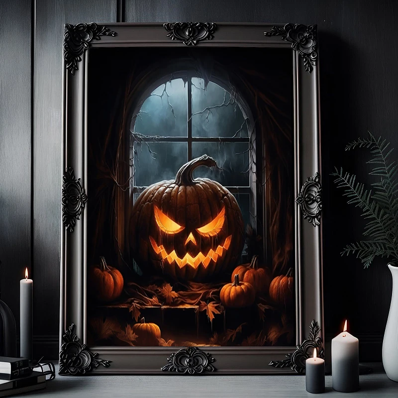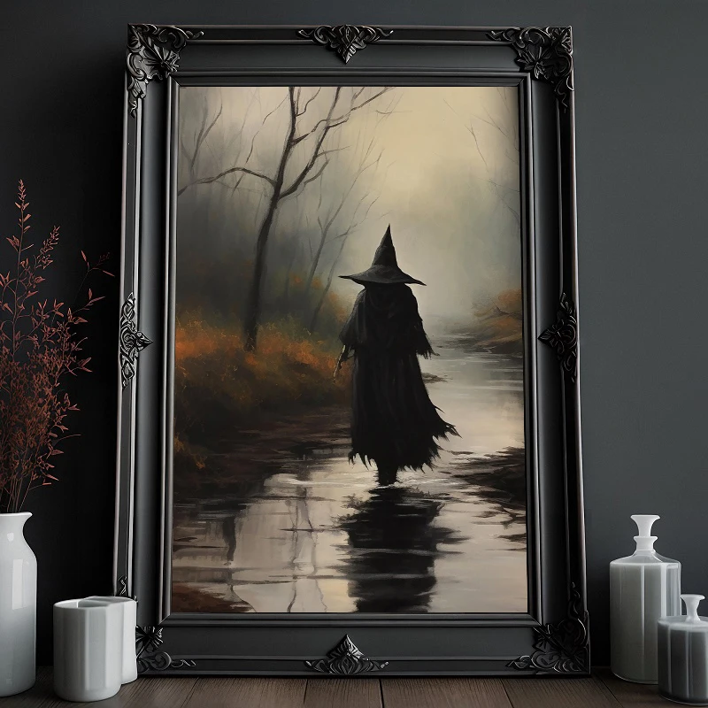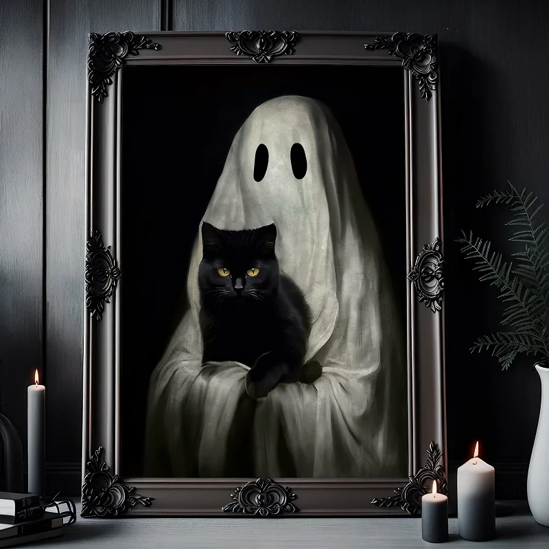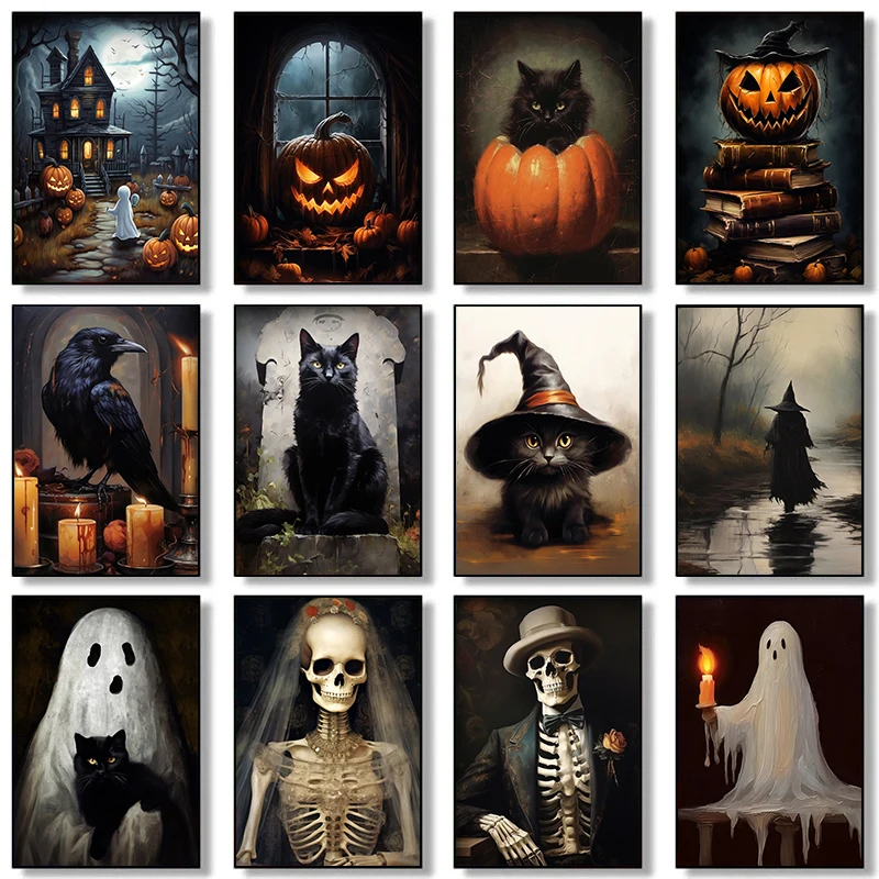 Dark Academia Gothic Vintage Posters Print White Ghost Pumpkin Black Cat Witch Canvas Painting Halloween Wall Picture Home Decor