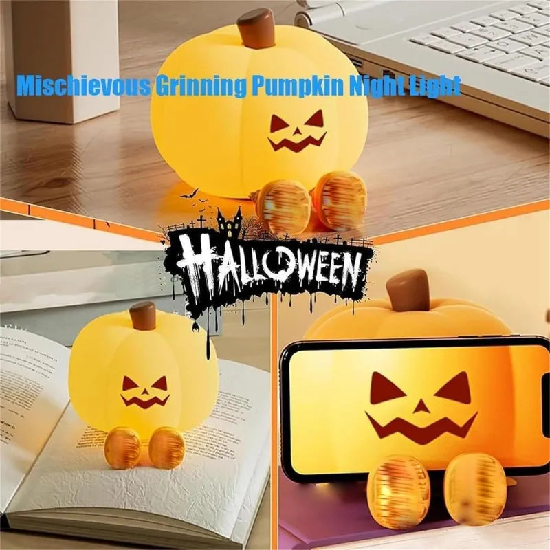 Halloween Pumpkin LED Night Light 3 Modes Rechargeable Silicone Table Lamp Touch Switch Children's Night Light for Nursery Bedroom Gift