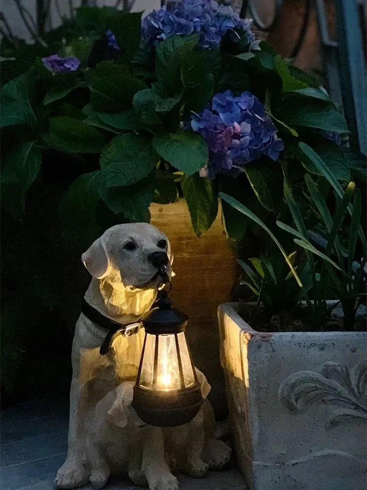 1.This Dog Statues Garden Ornaments with Detachable Removable solar Light Lantern very decorative and functional.